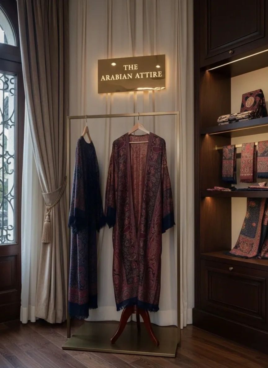 At The Arabian Attire, we are dedicated to bringing you the finest in Arabian fashion. Our collections are crafted to celebrate the rich heritage and elegance of traditional attire.
